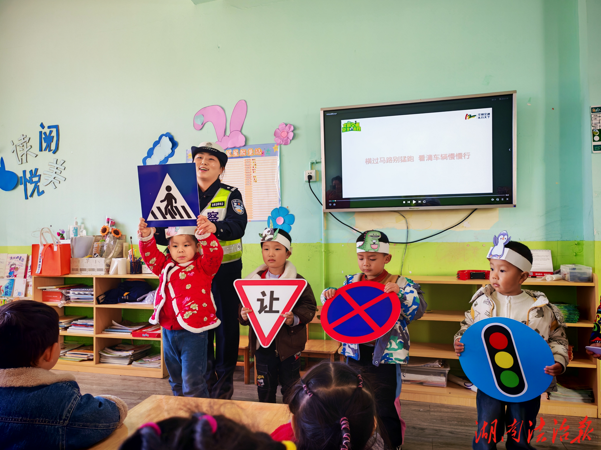 寓教于樂(lè),安全種子播校園。民警走進(jìn)陽(yáng)光寶貝幼兒園,通過(guò)情景模擬、互動(dòng)游戲等方式,為孩子們上了一堂生動(dòng)交通安全課?!敖痪⌒堋蓖媾汲蔀橹R(shí)“小伙伴”,以“小手拉大手”將文明出行理念延伸至家庭。