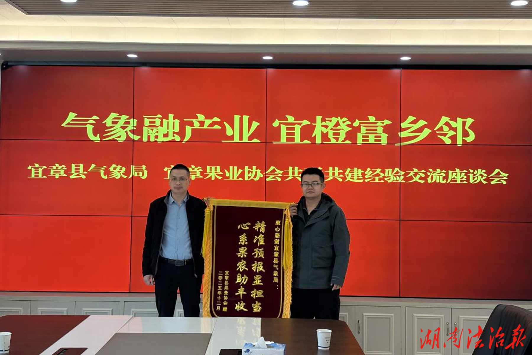 湖南法治報(bào)訊(通訊員:李天慧)為深化氣象服務(wù)與地方特色農(nóng)業(yè)產(chǎn)業(yè)深度融合,以精準(zhǔn)氣象賦能鄉(xiāng)村產(chǎn)業(yè)振興、助推“宜章臍橙”品牌提質(zhì)增效。近日,宜章縣氣象局聯(lián)合縣果業(yè)協(xié)會(huì)舉辦“氣象融產(chǎn)業(yè) 宜橙富鄉(xiāng)鄰”經(jīng)驗(yàn)交流座談會(huì)。雙方圍繞氣象服務(wù)如何精準(zhǔn)對(duì)接臍橙生產(chǎn)實(shí)際需求展開深入務(wù)實(shí)交流,共同擘畫“氣象+產(chǎn)業(yè)”惠農(nóng)興農(nóng)新藍(lán)圖。