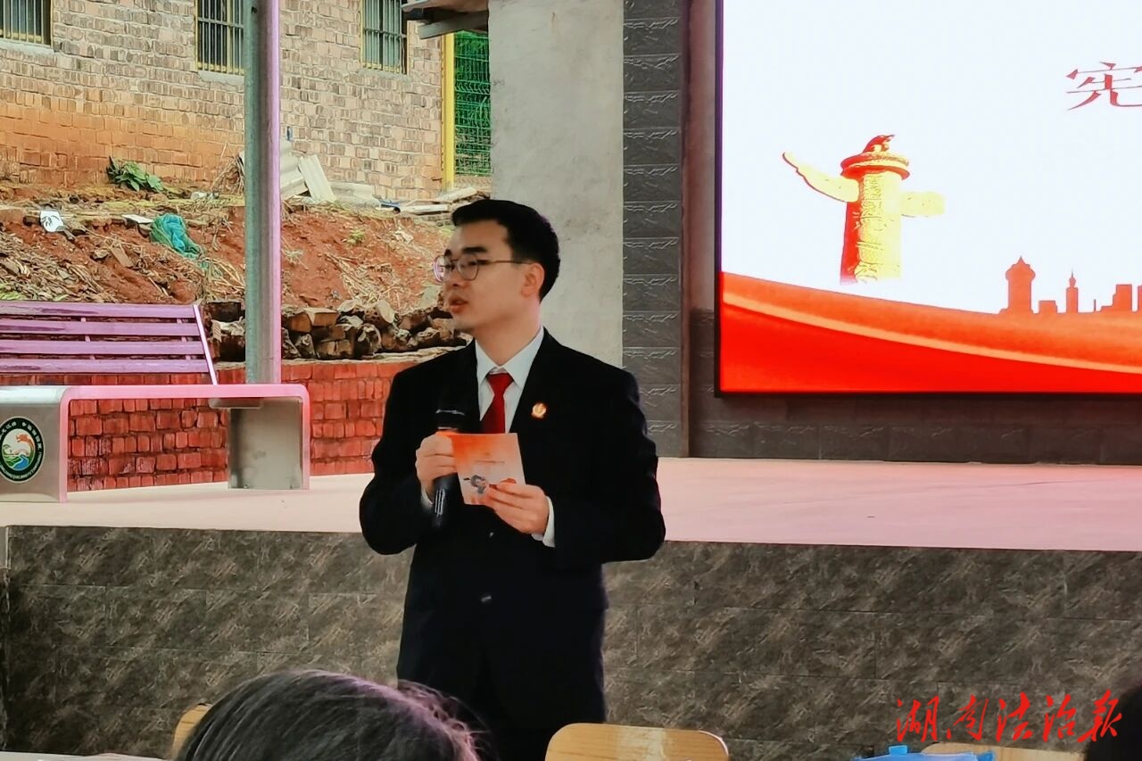 湖南法治報(bào)訊(通訊員 唐嬙)為深入學(xué)習(xí)貫徹黨的二十大和二十屆二中、三中、四中全會(huì)精神,踐行習(xí)近平法治思想,12月5日,正值憲法宣傳周,又是國際志愿者日,冷水灘區(qū)人民法院“小獬豸”青年普法志愿服務(wù)隊(duì)走進(jìn)仁灣街道龍江橋村,讓憲法精神在田間地頭生根發(fā)芽。