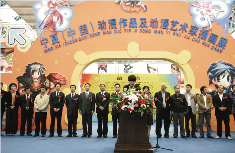 本次展會于2008年9月23日在銀川國際會展中心開展,寧夏自治區(qū)政協(xié)副主席安純?nèi)耍灾螀^(qū)宣傳部副部長房全中,市委常委、開發(fā)區(qū)黨工委書記、管委會主任李澤峰,市委常委,副市長潘躍龍,市委常委、宣傳部部長尤艷茹,副市長王久彬,開發(fā)區(qū)管委會副主任陳偉出席了展會開幕式。展覽時(shí)間為期15天,共吸引社會各界群眾及大中專院校相關(guān)專業(yè)學(xué)生1萬人次到場參觀,對于推動國內(nèi)動漫插畫產(chǎn)業(yè)發(fā)展,促進(jìn)國內(nèi)外動漫創(chuàng)作、動漫出版以及專家與技術(shù)人才交流、借鑒,發(fā)展動漫創(chuàng)意產(chǎn)業(yè)創(chuàng)新發(fā)展具有十分重要的意義。