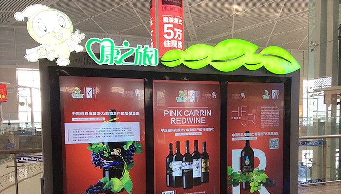 設(shè)計(jì)“康之旅”產(chǎn)品宣傳廣告牌,推廣紅酒、具備地域特色的產(chǎn)品。